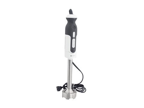 Expand your culinary horizons with this versatile hand-held blender from DeLonghi. Stainless steel Tri-Blade design offers splash-free blending directly in a pot or bowl. Puree soups as you cook, whip egg whites for meringue, even use it as a food processor. Ergonomic soft-grip handle with push button control for pulse and continuous blending. Comes with: •Chopping bowl with lid (1 lb 1.0 oz. ca